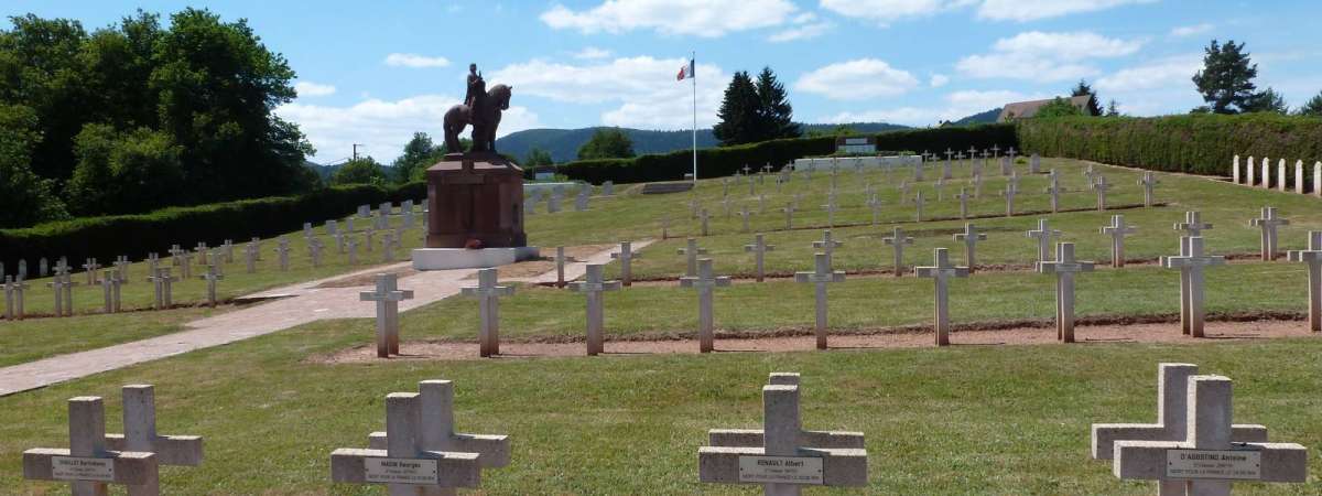 L’histoire d’un carré d’étoffe frappé de l’aigle impérial, tombé entre les mains du premier bataillon des chasseurs à pied le 14 août 1914 lors de la bataille de Saint Blaise la Roche, une première victoire sur l’armée ennemie, un camouflet infligé à la superbe allemande. C’est aussi ici, aux abords de la ferme de Niargoutte à l’issue de violents combats, que les premiers alsaciens désertent les rangs d’une armée qu’ils savent ne pas être la leur.